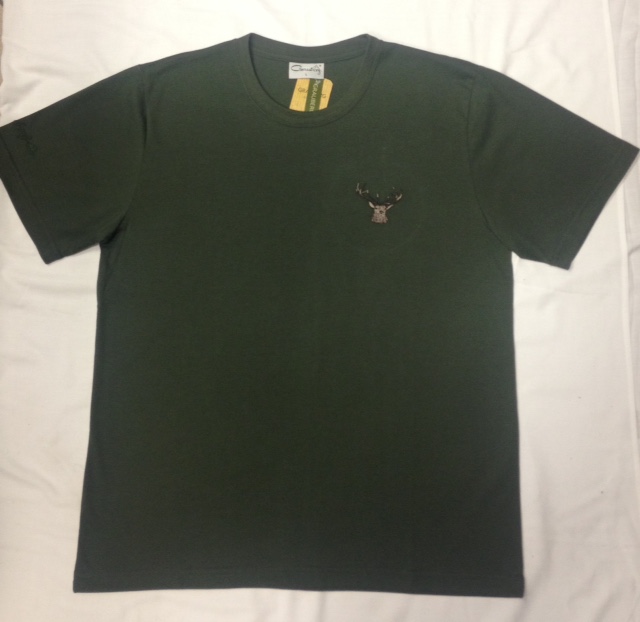 Zöld póló ,hímzett szarvas motívummal. Anyag összetétel:65% pamut,35%poliészter. Kellemes,kényelmes viselet egész napra.Rendelhető méretek:M,L,XL,XXL,3XL. Magyar termék.
