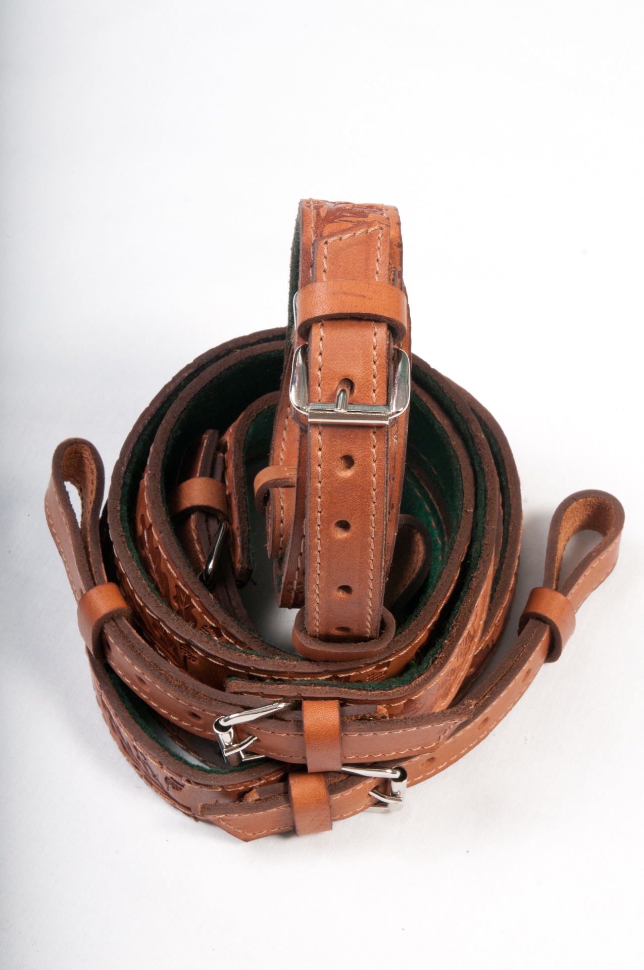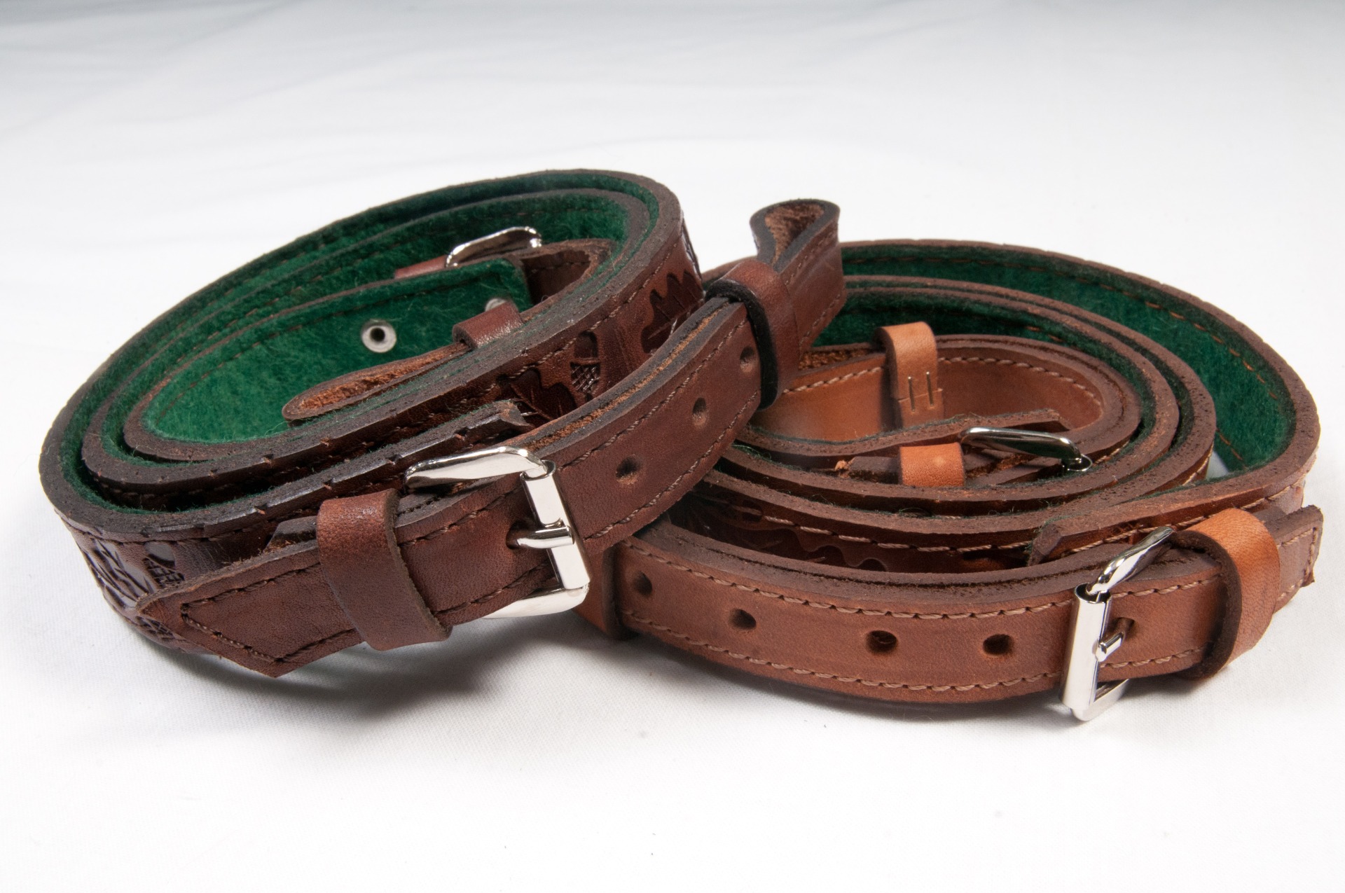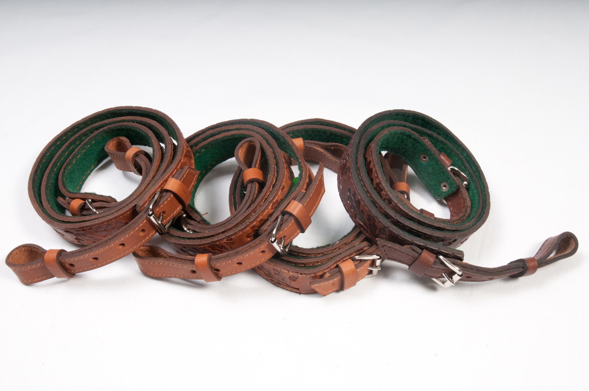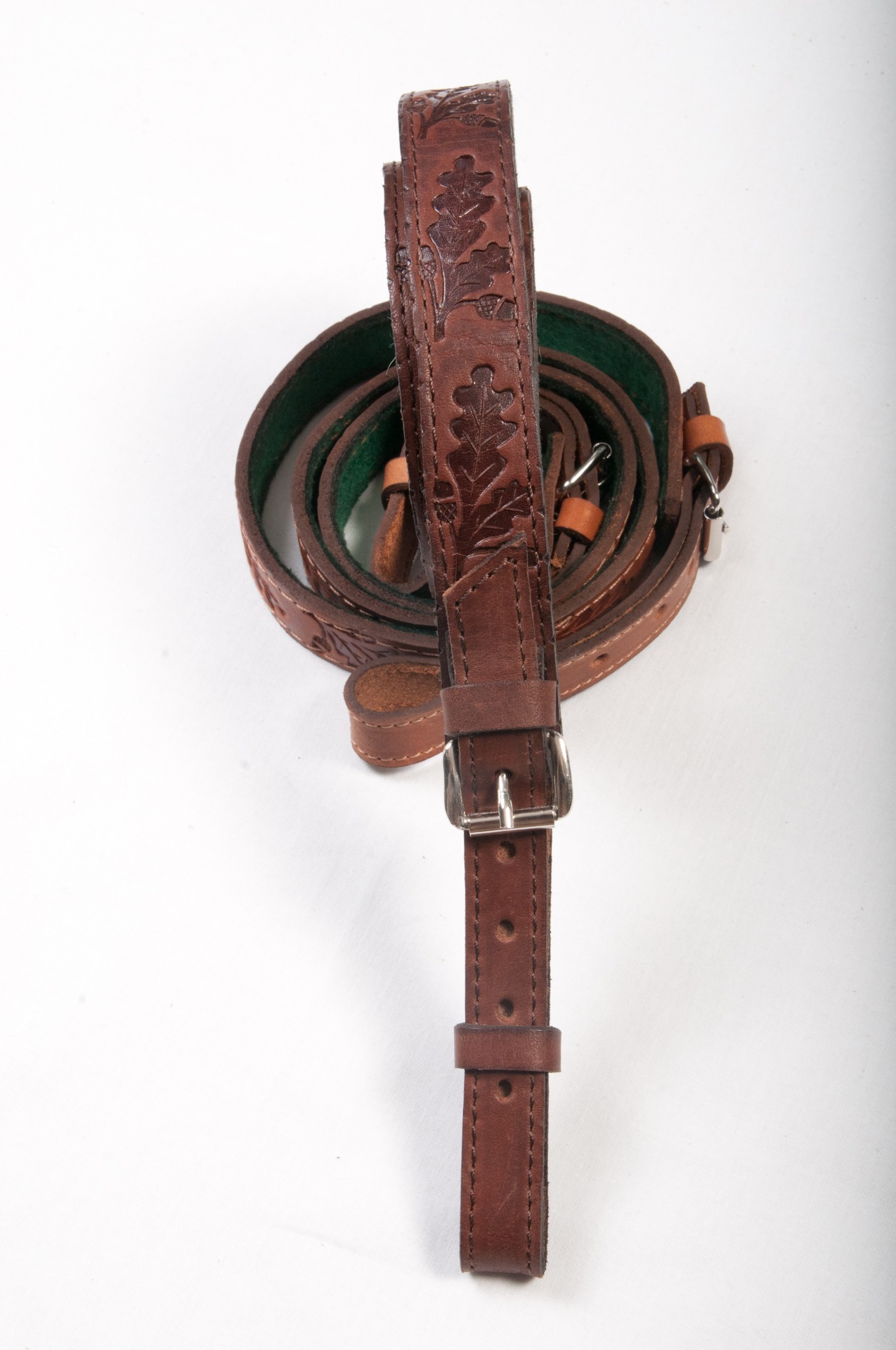 Puskaszíj ,filc béléssel ,tölgylevél mintával. Elérhető színek: natúr, barna.